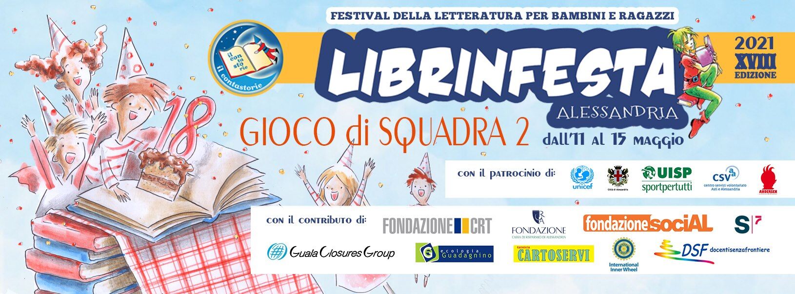 Librinfesta – il Festival di Letteratura per ragazzi di Alessandria – compie 18 anni e per un compleanno così importante non poteva mancare. Eccoci dunque ai nastri di partenza, con il patrocinio di Unicef, Comune di Alessandria, Uisp, Csvaa (Centro servizi per il volontariato Asti e Alessandria).